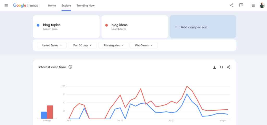 Still essential for timing and geographic insights, Google Trends helps validate whether your AI-generated topics align with actual search interest.