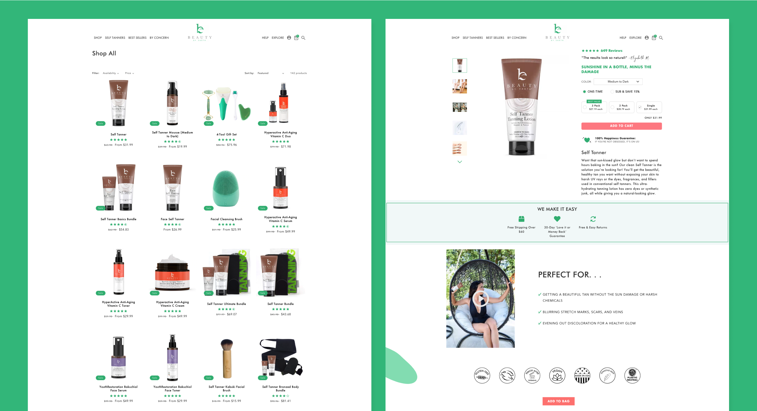 Moving away from an Amazon-focused sales model can be a large task for any business, especially when your website isn’t quite ready to take the lead. When Beauty By Earth came to us they were dealing with a less than ideal conversion rate. They needed a partner to help take their underperforming website and turn it into a modern and thriving DTC hub.