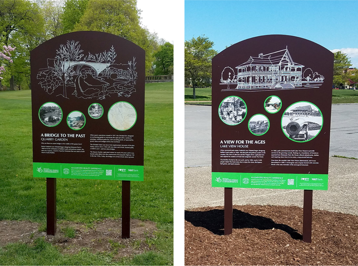 A core feature of the new app was the introduction of “A Window to the Past,” a pair of Augmented Reality (AR) experiences. These AR features took park visitors on a historical journey, allowing them to view two areas of the Olmsted parks as they appeared in different eras. Key aspects of the AR development are explained below.