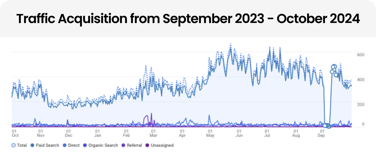 Nearly 90% of Free Church Websites’ traffic during this period was attributed to the optimized Google Ad Grants campaign, underscoring its impact. Targeted keywords like “Christian websites” and “church websites” were instrumental in drawing users who were both interested in and ready to engage with the services.