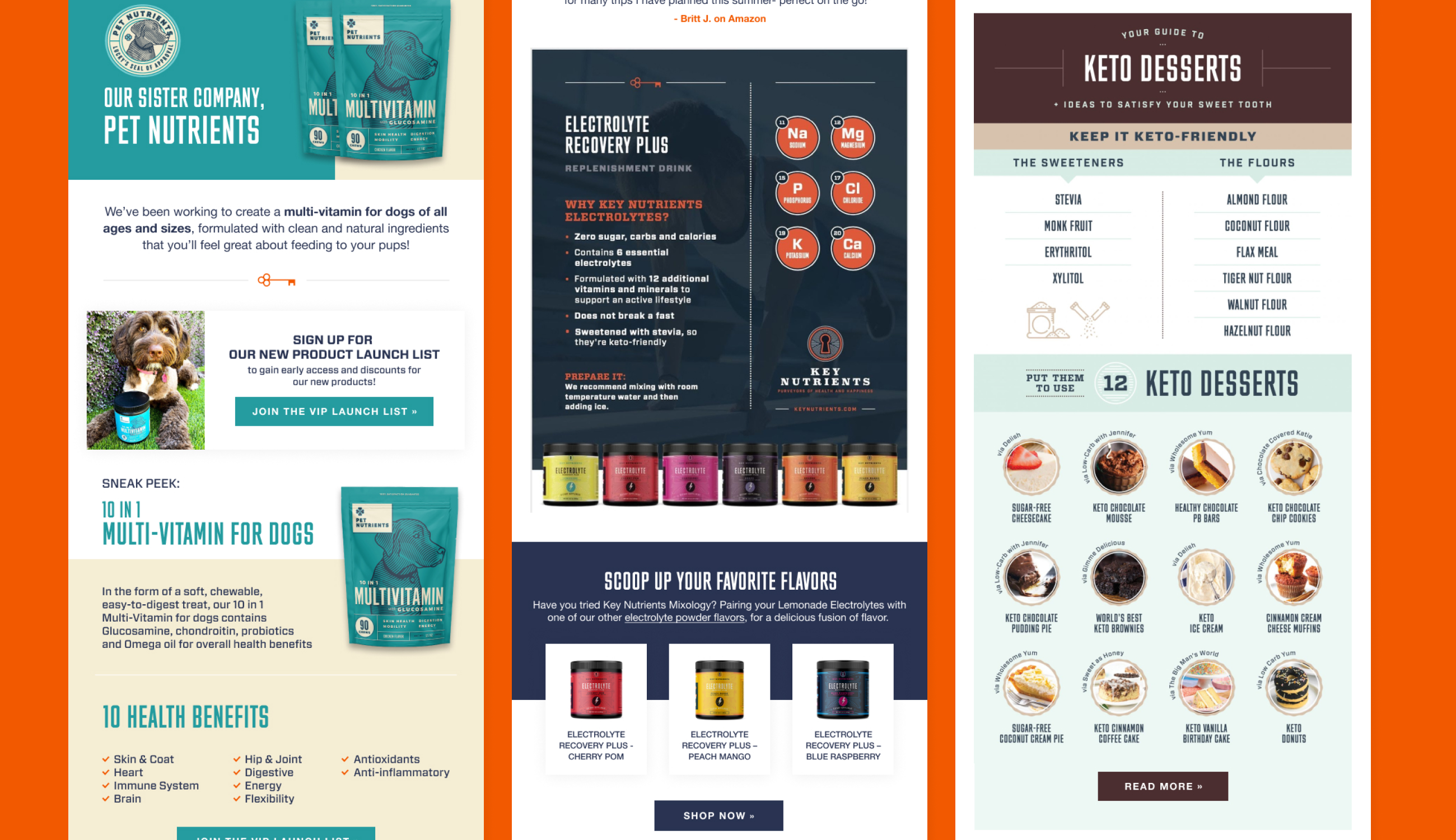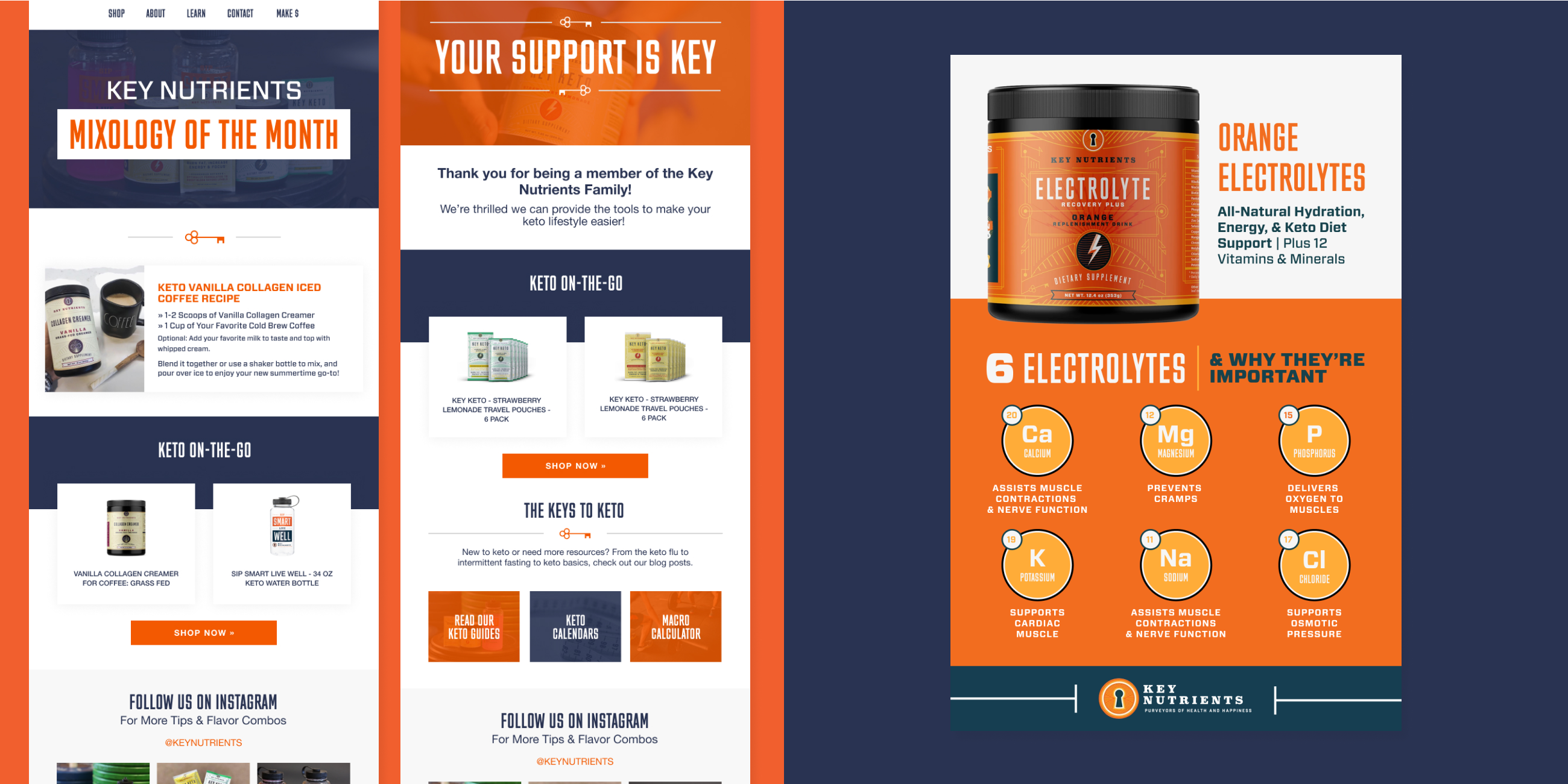 We updated a few key branding assets for Key Nutrients along the way. Custom iconography was designed throughout the site to create a stronger brand look and feel. We also began to incorporate customer lifestyle photography to further build and connect their community. Most importantly we designed and integrated beautiful (and effective) Klaviyo email newsletters—a channel that drove 58% of Key Nutrients’ revenue.
